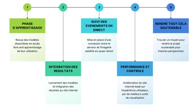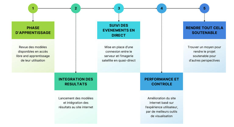 Le projet consistera dans un premier temps en un site web comportant une carte interactive qui fournira des mises à jour sur les événements naturels en cours. En outre, des sections dédiées offriront un aperçu des événements passés et des projections pour l'avenir. Chaque type de péril sera présenté avec les recherches pertinentes disponibles et utilisées pour les outils fournis.