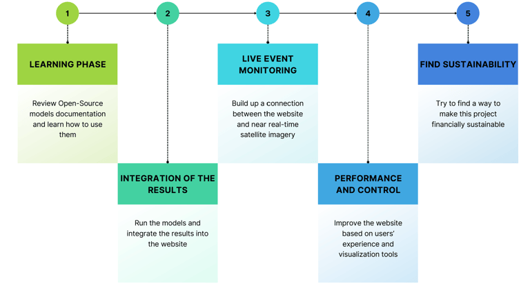The project will initially consist of a website featuring an interactive map providing updates on ongoing natural events. In addition, dedicated sections will offer insights into past occurrences and projections for the future. Each type of peril would be presented alongside the relevant available research and used for the provided tools.